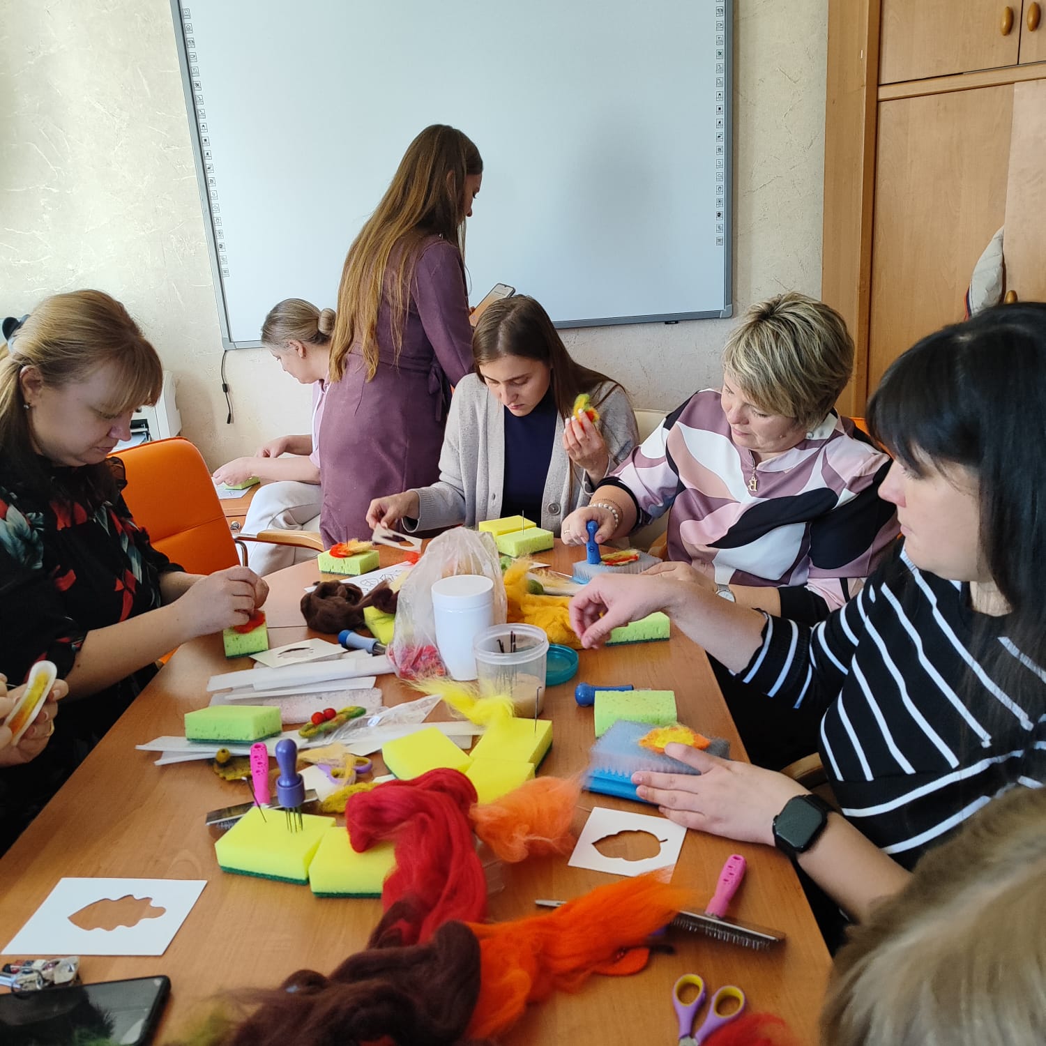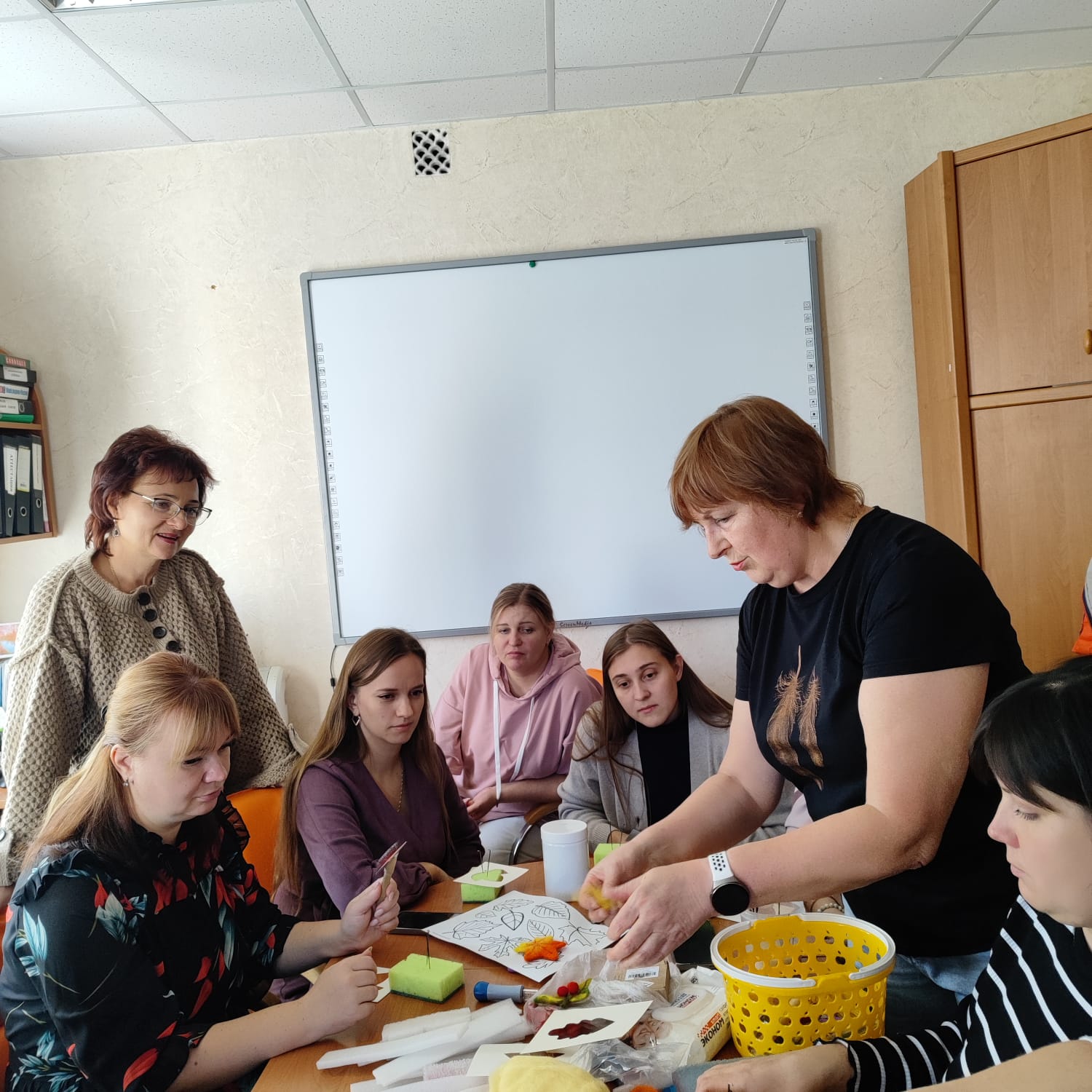 2 октября коллектив БУ ОО « ППМС-центр» отметил День учителя. Профсоюзный комитет инициировал проведение мастер-класса по сухому валянию броши на осеннюю тематику. На мастер-классе участники узнали много интересного о процессе создания аксессуаров из шерсти. Они научились делать цветы, листья и другие элементы, которые можно использовать для украшения одежды. В процессе мероприятия все педагоги получили подарки от профсоюзного комитета, а также смогли пообщаться друг с другом и поделиться своими впечатлениями.